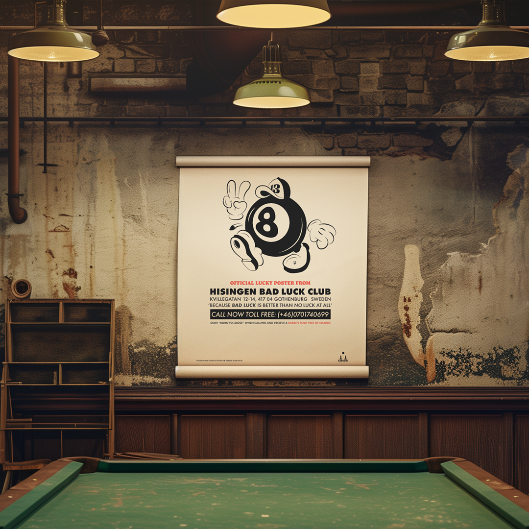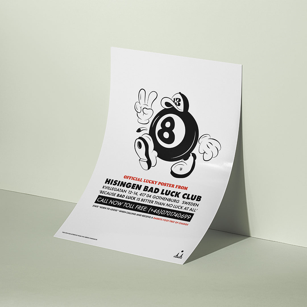 Join the ranks of the Hisingen Bad Luck Club, where bad luck is better than no luck at all! We’ve all had our fair share of mishaps, and this official lucky poster, featuring the charming 8-ball mascot, is here to remind us we're in good company. Add a touch of Gothenburg’s finest bad luck to your space and celebrate the universal truth that misfortune loves company!