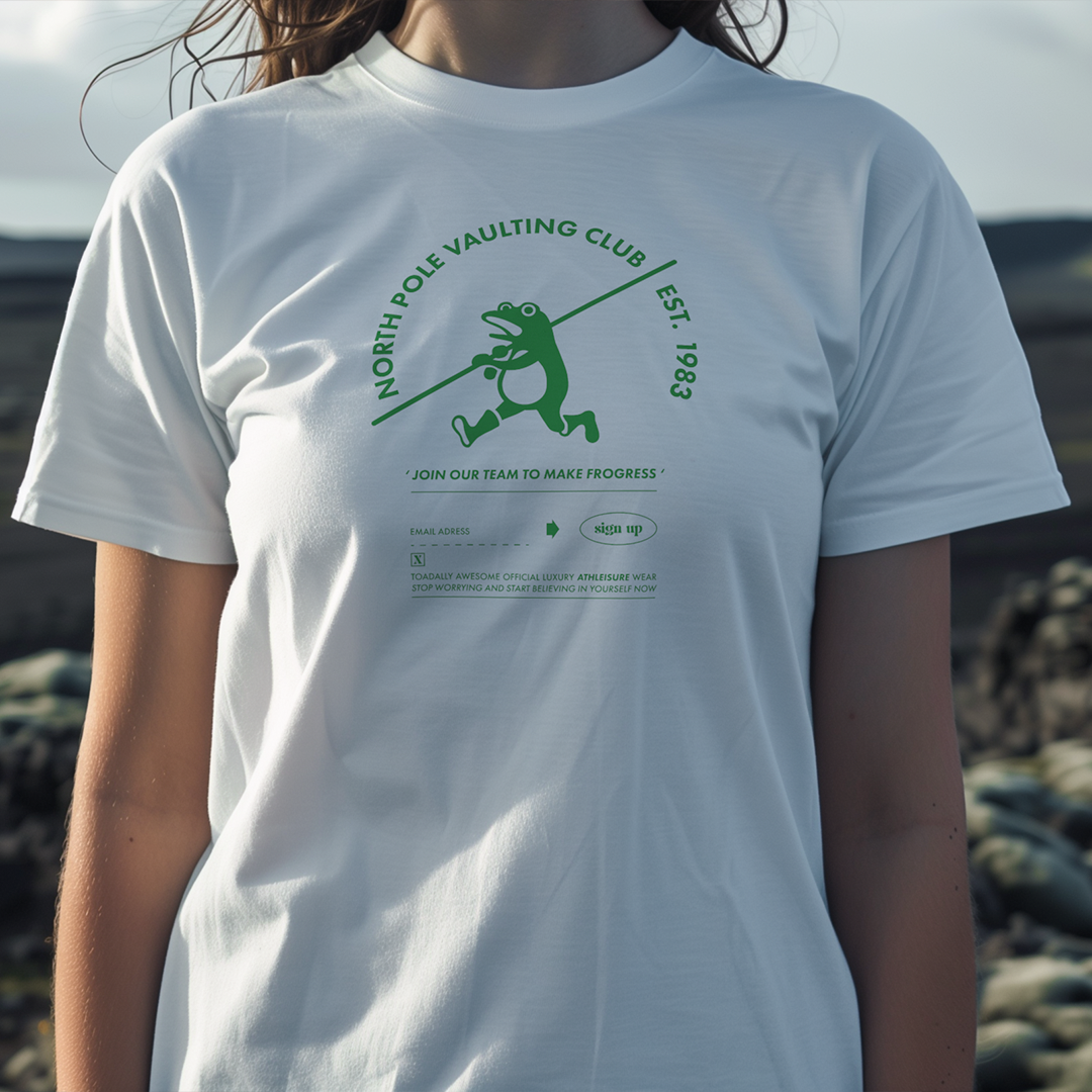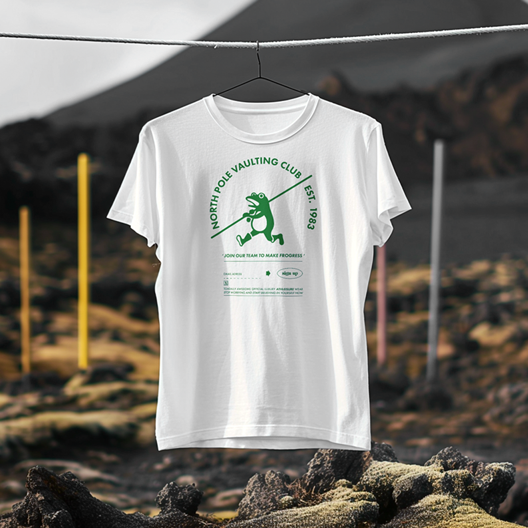 Join the "North Pole Vaulting Club," established in 1983, and be part of a unique team committed to making frogress! This shirt celebrates the adventurous spirit of pole vaulters who push their limits in one of the most challenging environments. Embrace the thrill of vaulting and the determination to achieve greatness, no matter where you are.