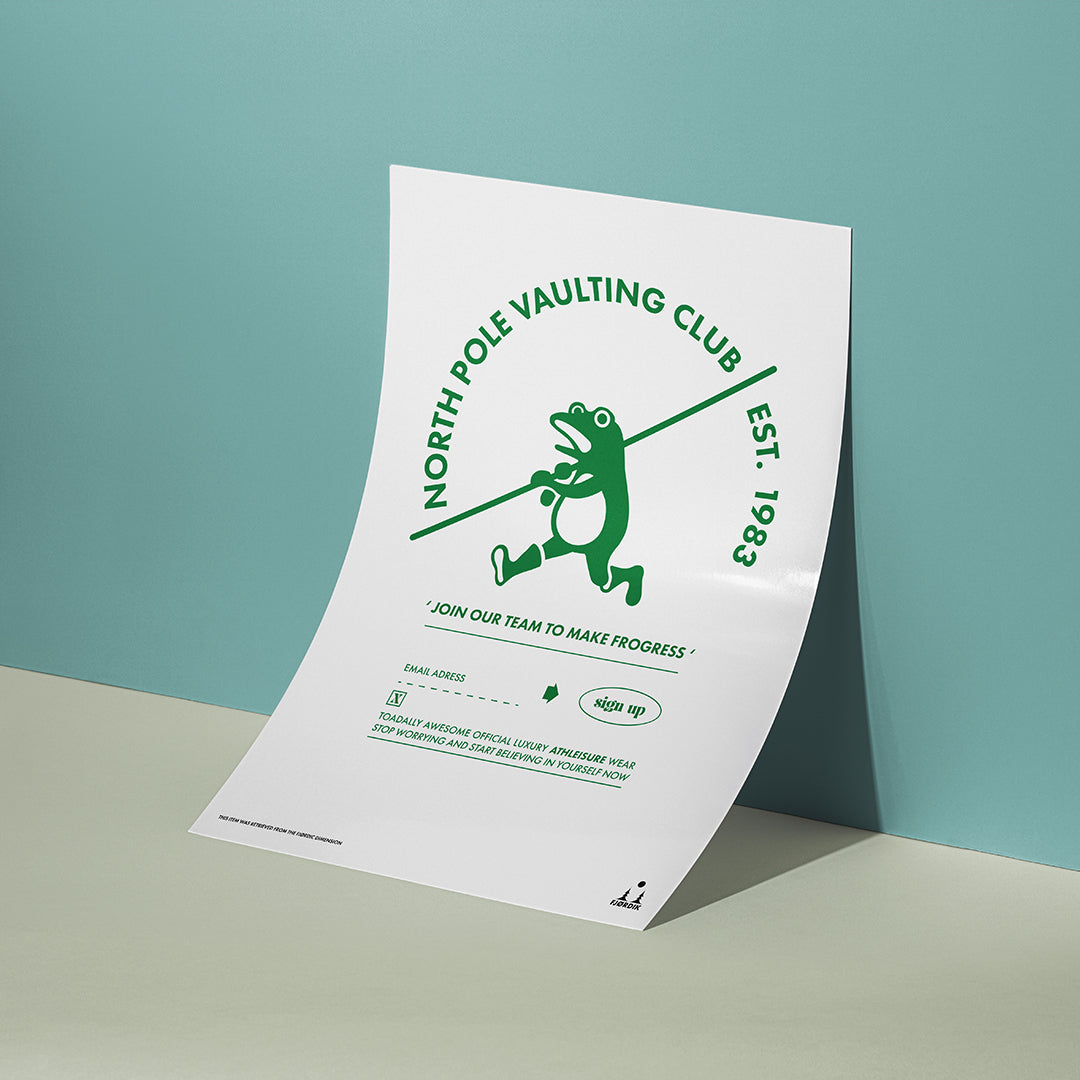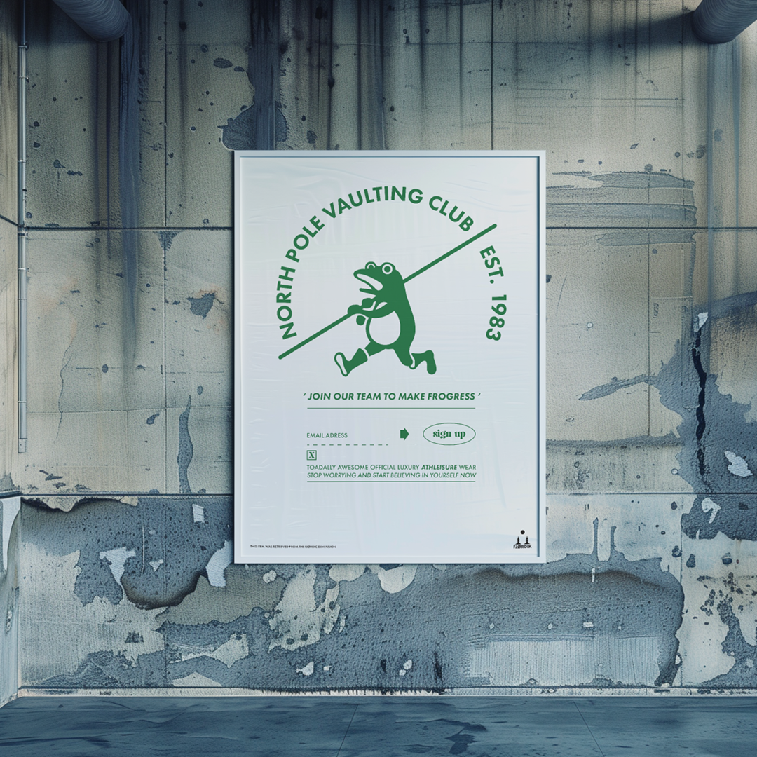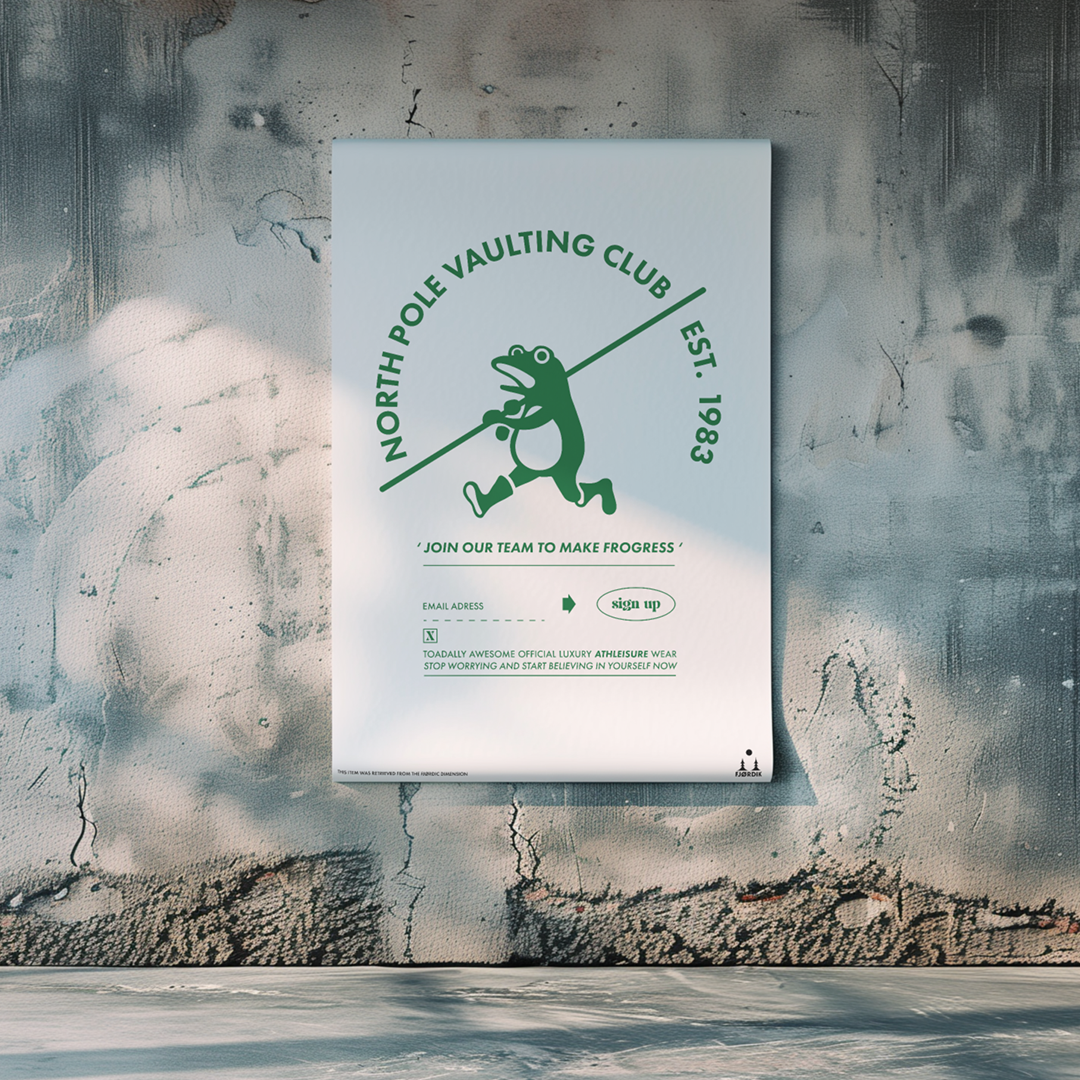 Join the "North Pole Vaulting Club," established in 1983, and be part of a unique team committed to making frogress! This poster celebrates the adventurous spirit of pole vaulters who push their limits in one of the most challenging environments. Embrace the thrill of vaulting and the determination to achieve greatness, no matter where you are.