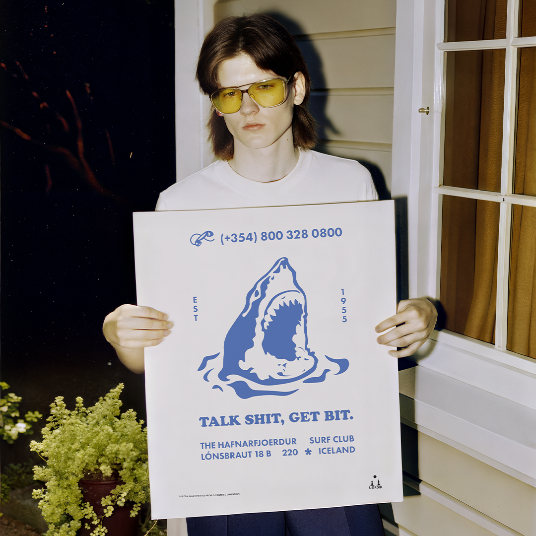 Embrace the fierce spirit of the ocean with the "Hafnarfjoerdur Surf Club" poster! Established in 1955, this club’s motto, "Talk Shit, Get Bit," speaks to thrill-seekers and shark enthusiasts alike. Whether you ride the waves or simply admire the power of the sea’s apex predators, this poster is a bold tribute to courage and adventure.